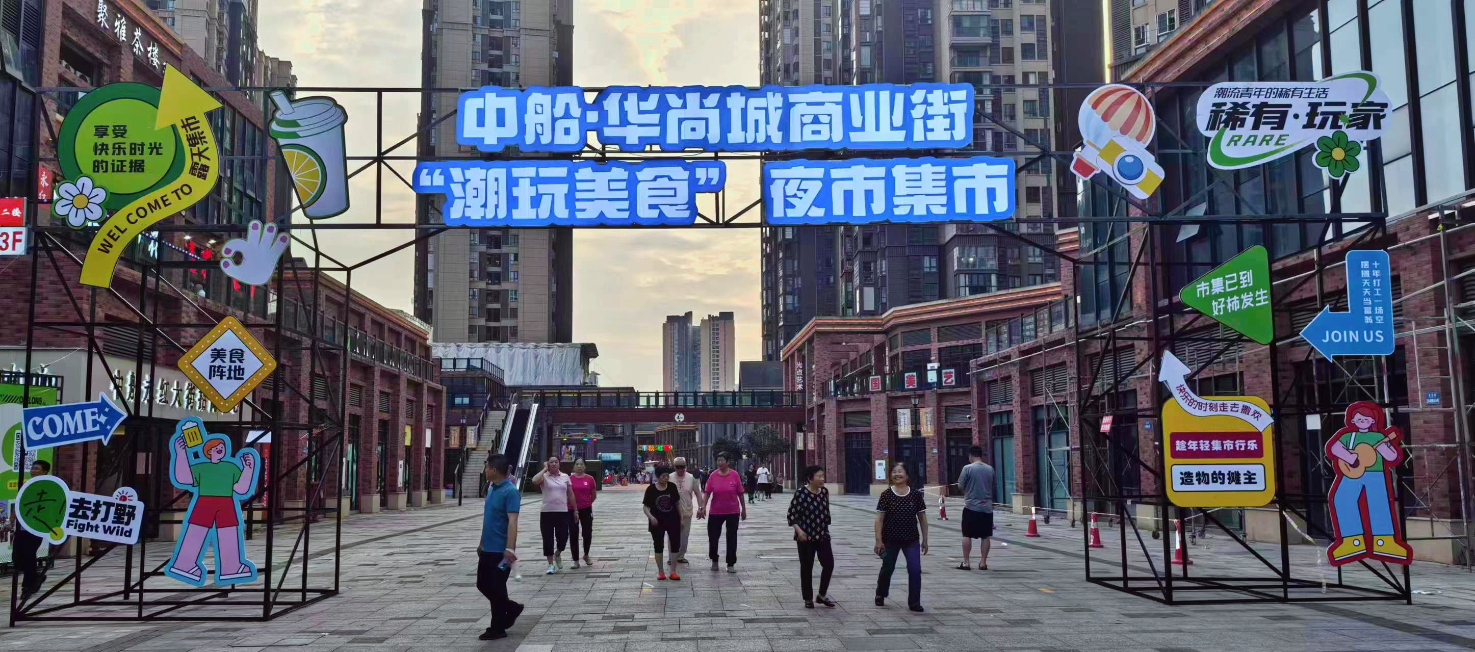 2024年7月2日,重庆置业中船·华尚城项目商业街区“潮玩美食”夜市集市活动正式开幕。