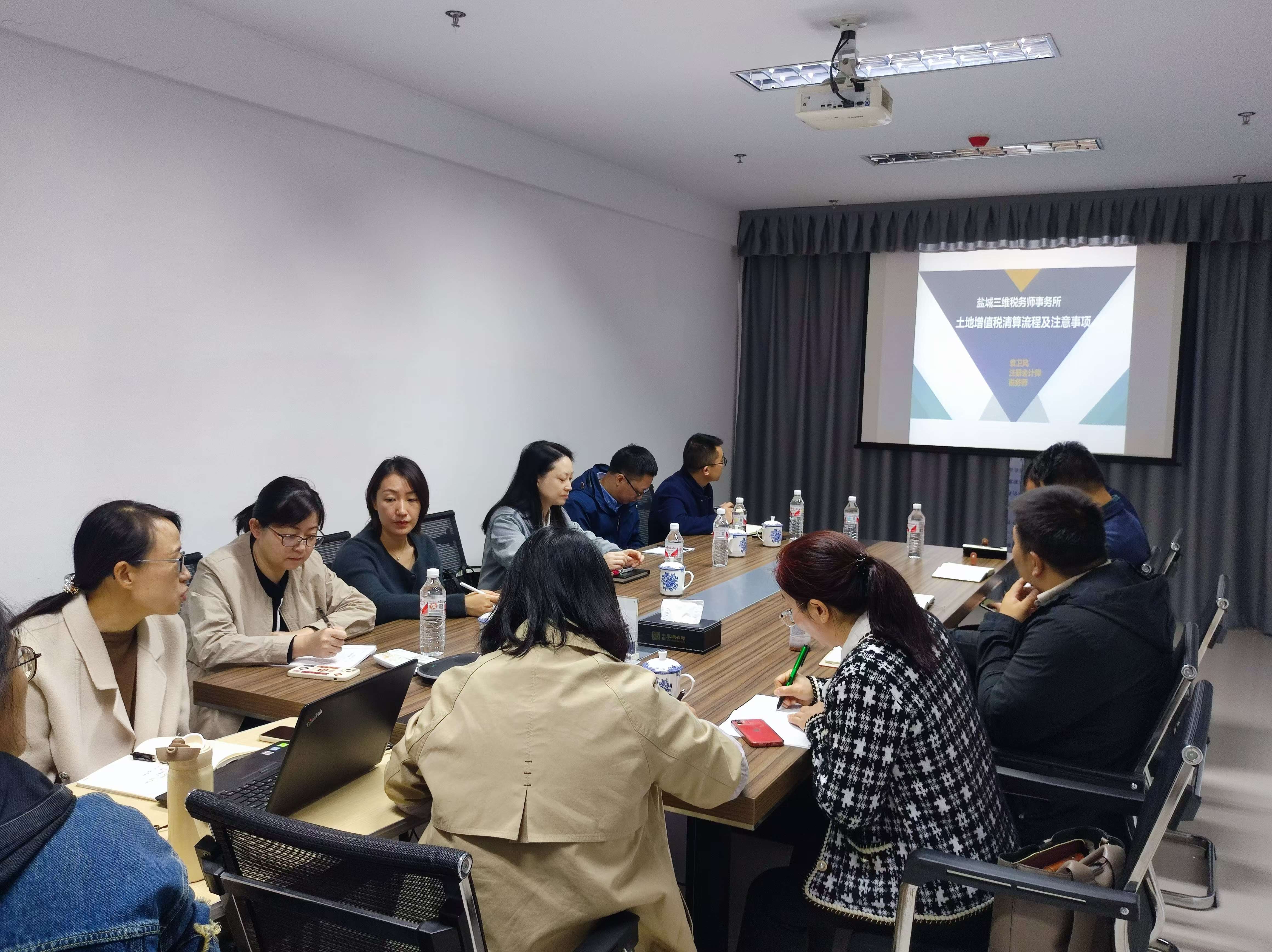 学习活动邀请盐城市三维税务师事务所的袁卫凤律师作《土地增值税清算流程及注意事项》专题讲座,详细介绍土地增值税的计算过程及土地增值税清算过程中需要注意的事项,并结合各所属公司所在地区的土地增值税政策差异做针对性解读。实业公司财务金融部主任带领各所属公司财务负责人就当下正开展项目的财务报表质量、税收政策、跨部门合作、资金预算、全面预算、资产减值损失计提、财务共享及档案等方面进行深入地交流和探讨。