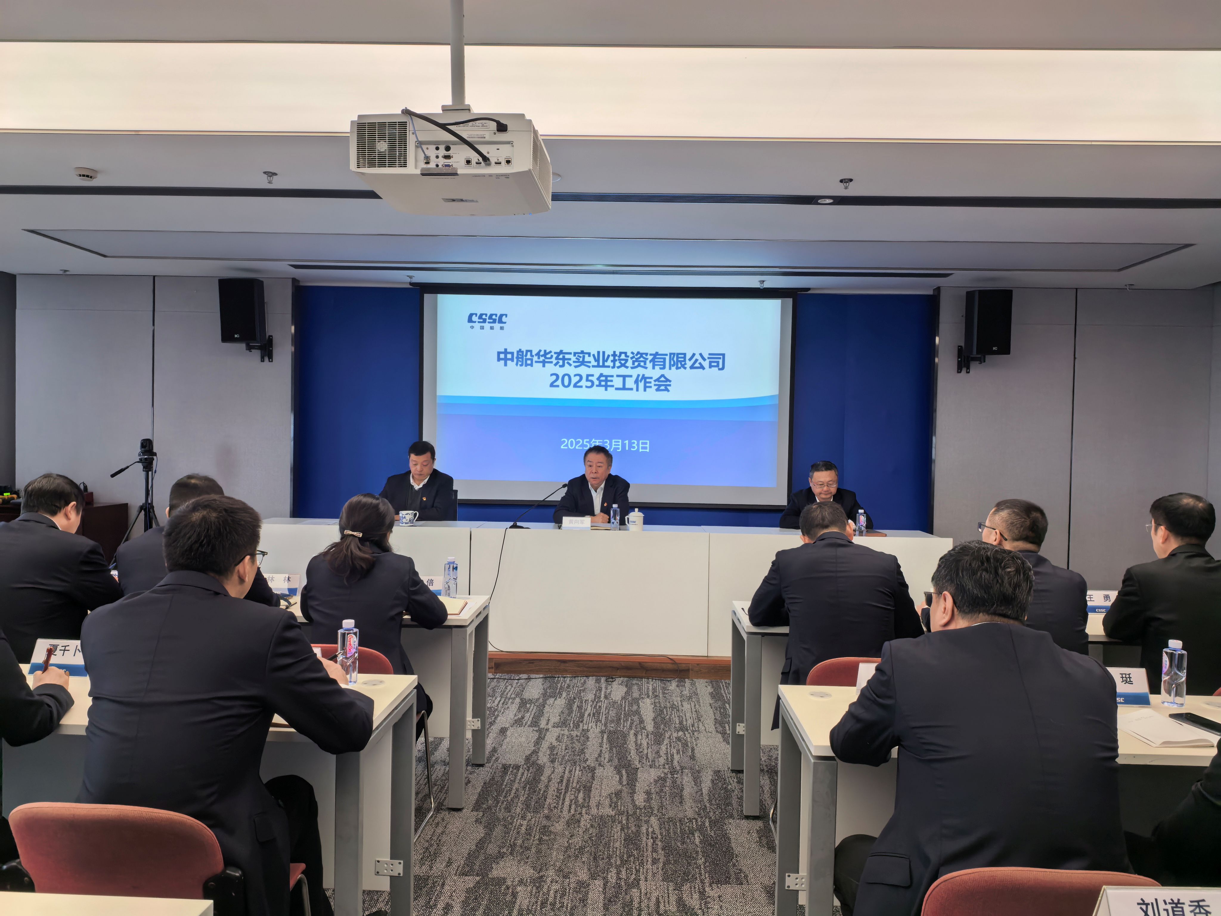 为实现实业公司转型发展而努力奋斗》的工作报告。公司党委副书记刘骁主持会议,公司副总经理陈杰传达中船集团、中船物资2025年工作会议精神。