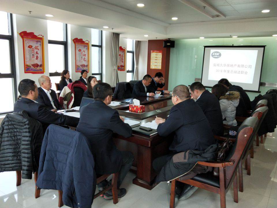 1月16日上午,盐城久华房地产有限公司组织召开2018年度总结述职会,公司全体员工参加会议。