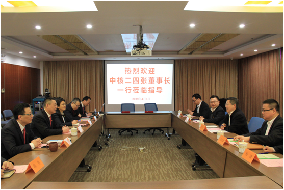 上海实业、中核二四相关领导和部门负责人参加了会谈和签字仪式。