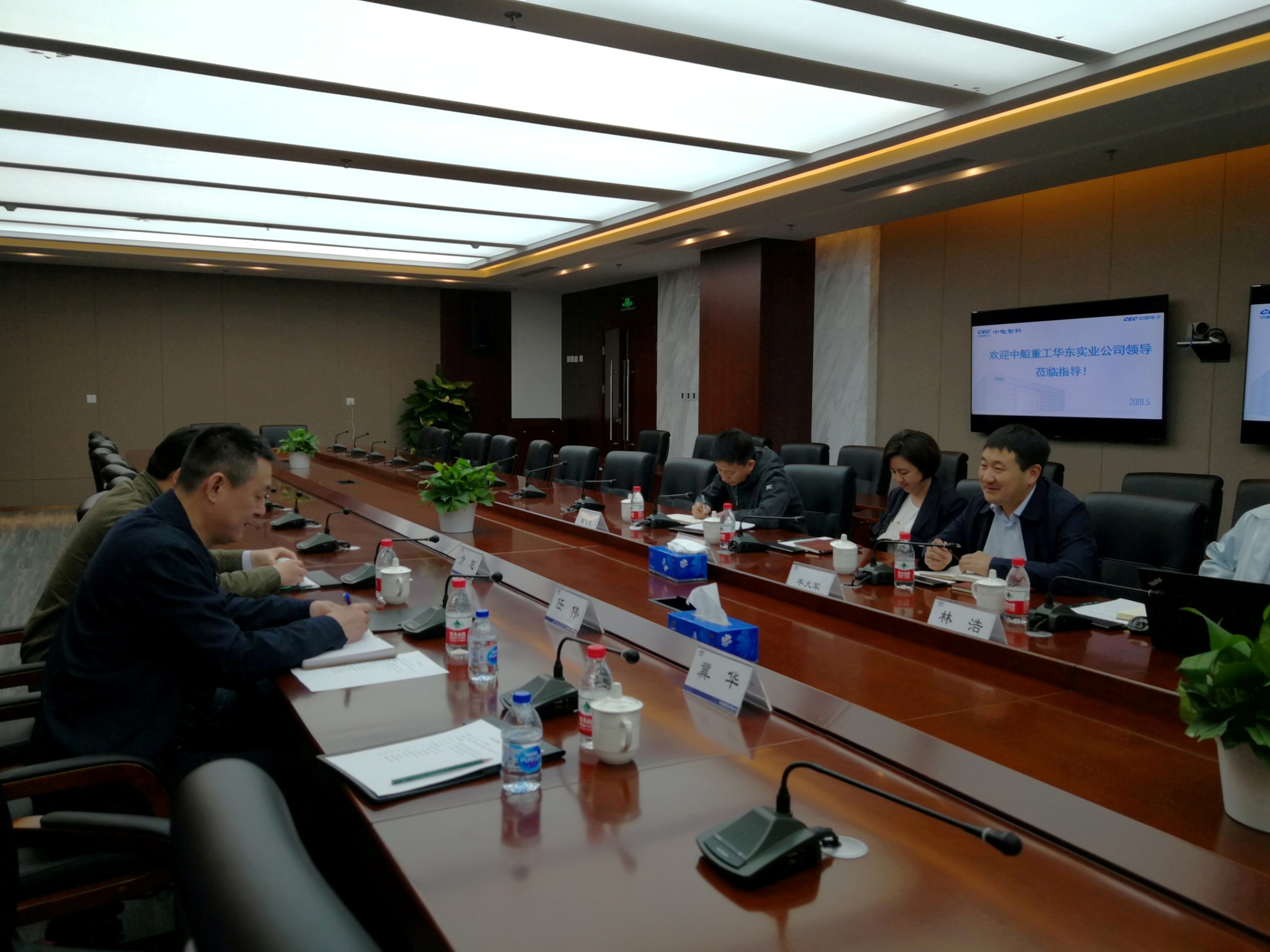 5月5日,实业公司董事长、党委书记任伟一行赴北京就国家“自强工程”全国产化PLC产品在船舶建造中的推广应用项目到中国电子智能科技公司开展考察交流活动。