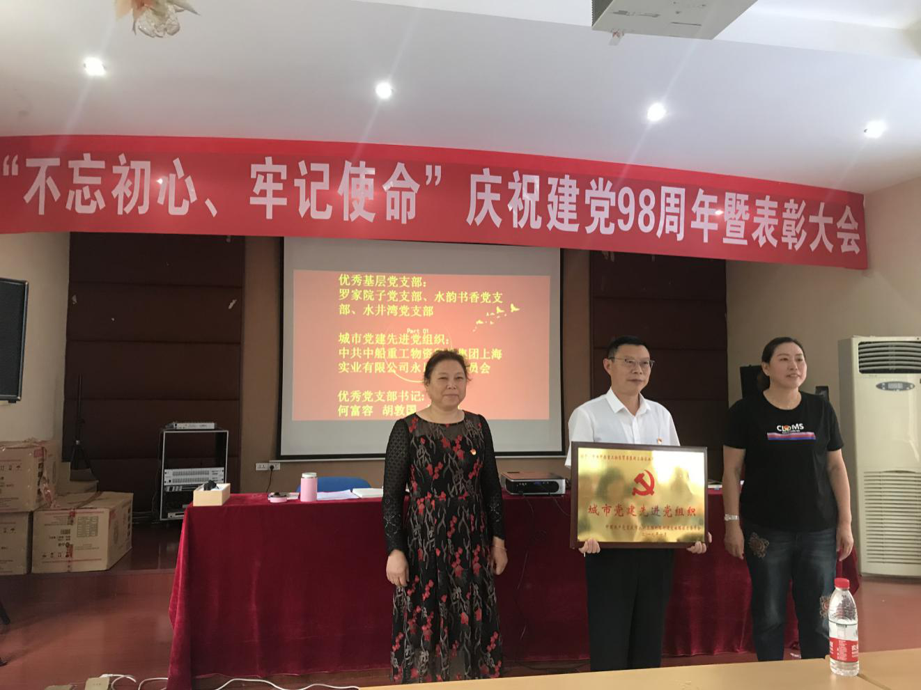 6月28日,在重庆市永川区胜利路街道文曲路社区党委组织召开的“不忘初心、牢记使命”庆祝建党98周年暨表彰大会上,永川党支部荣获“城市党建先进党组织”称号。