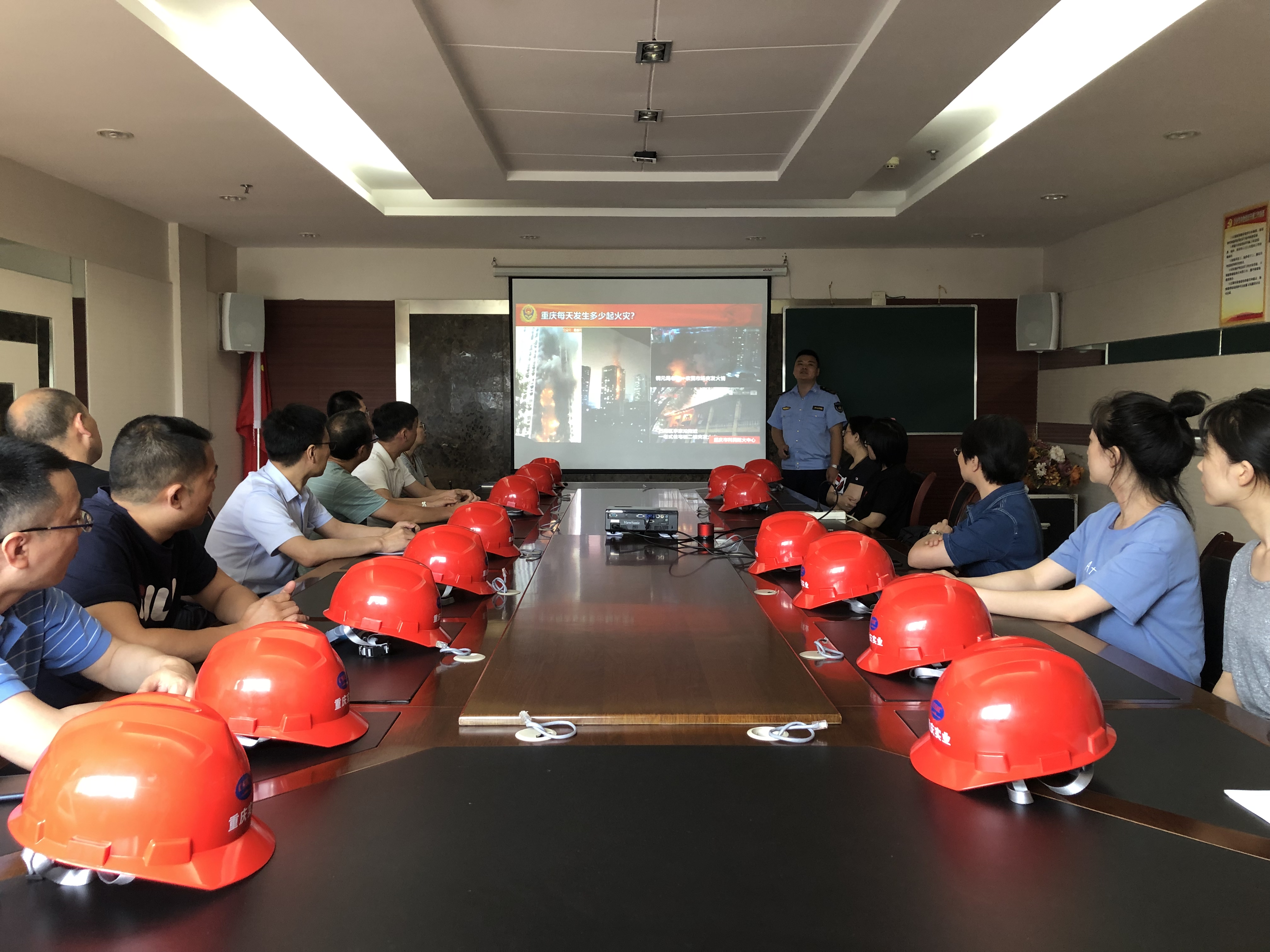 6月16日,重庆实业邀请了重庆市利民防火中心的张建教官,到公司开展消防安全培训,并指导公司全体员工进行了应急救援演练。