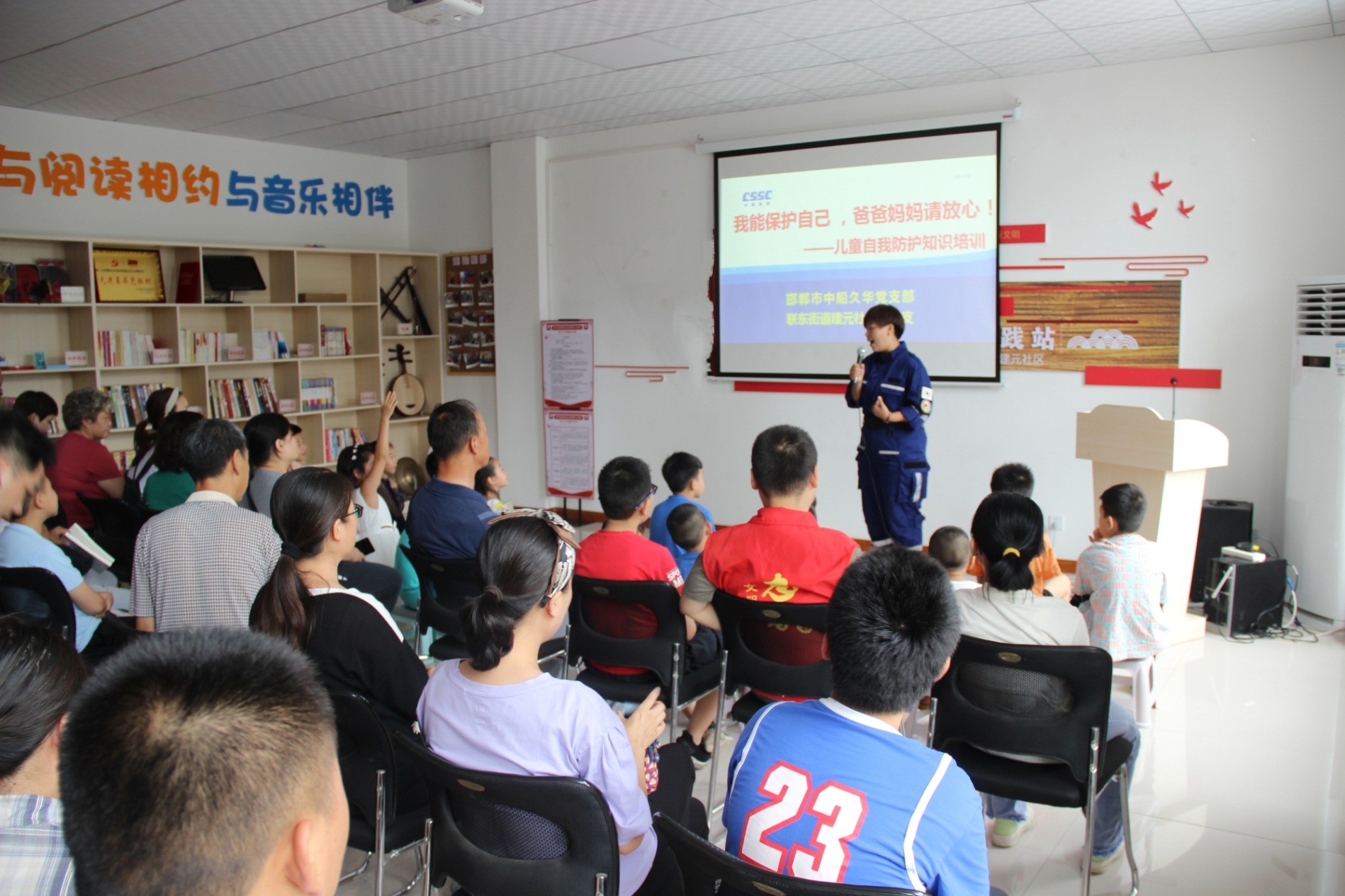 为解决职工群众后顾之忧,邯郸支部联合建元社区党总支,于7月22日组织了以“我能保护自己,爸爸妈妈请放心”为主题的亲子安全防护知识培训。联纺东街道党总支书记及邯郸久华全体职工、汉光华府小区业主代表及子女约70余人参加了此次活动。