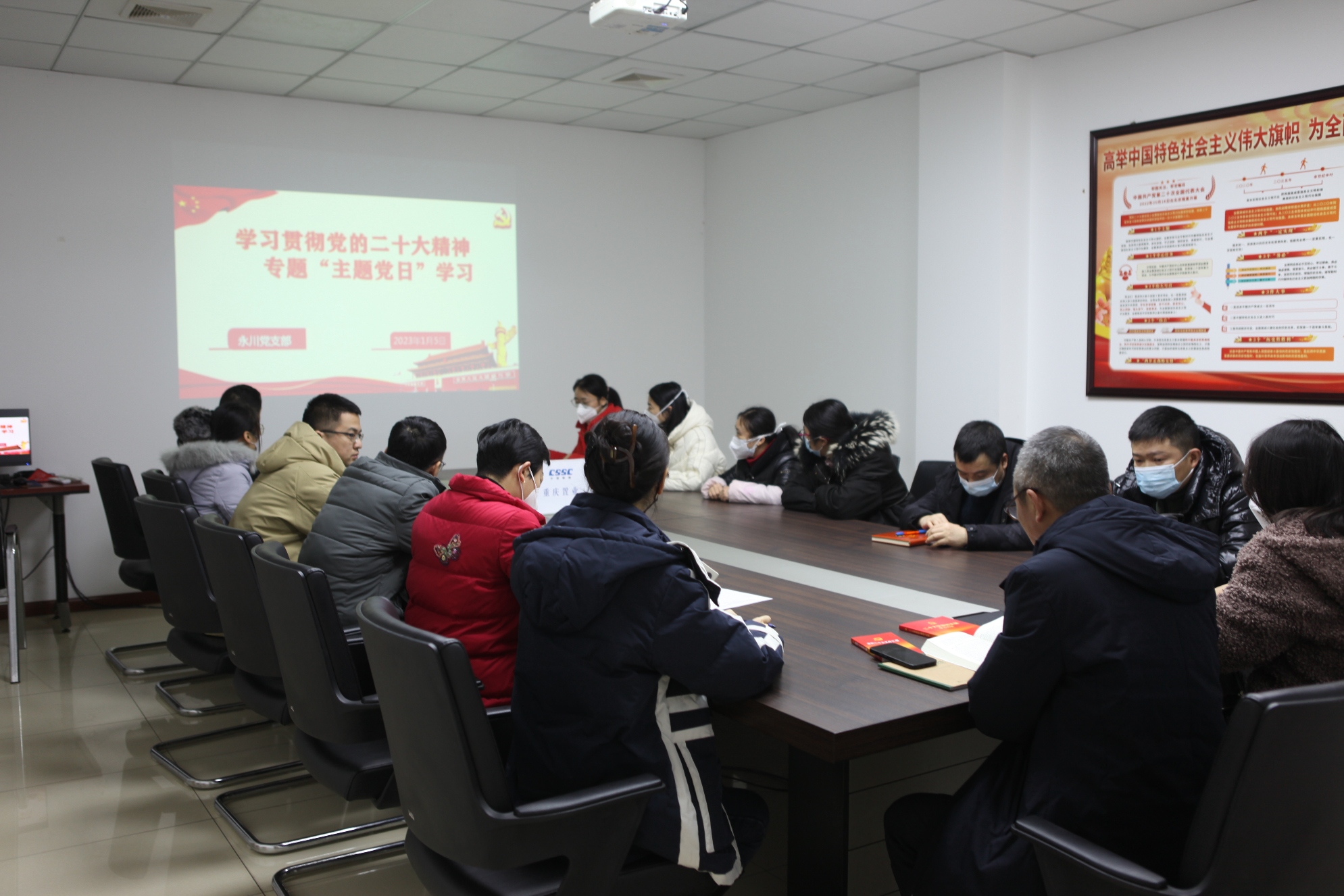 为深入学习贯彻党的二十大精神,永川党支部组织开展了党的二十大精神主题党日活动。支部全体党员、中层以上干部及职工群众参加学习研讨。支部书记领学了《党的二十大报告学习辅导百问》《二十大党间修正案学习问答》等相关章节内容,党员干部积极发言,联系实际工作谈认识理解、谈体会感悟。支部书记结合学习感悟,分享学习体会,给全体人员上了学习二十大精神专题党课。党课从党的二十大报告的主题、主要成果等方面解读了大会报告的思想精髓,引导全体人员在全面学习、全面把握、全面落实上下功夫,要聚焦中心工作,主动担当作为,推动项目高质量发展。会上组织全员开展了党的二十大精神知识答题活动,进一步巩固学习成果。