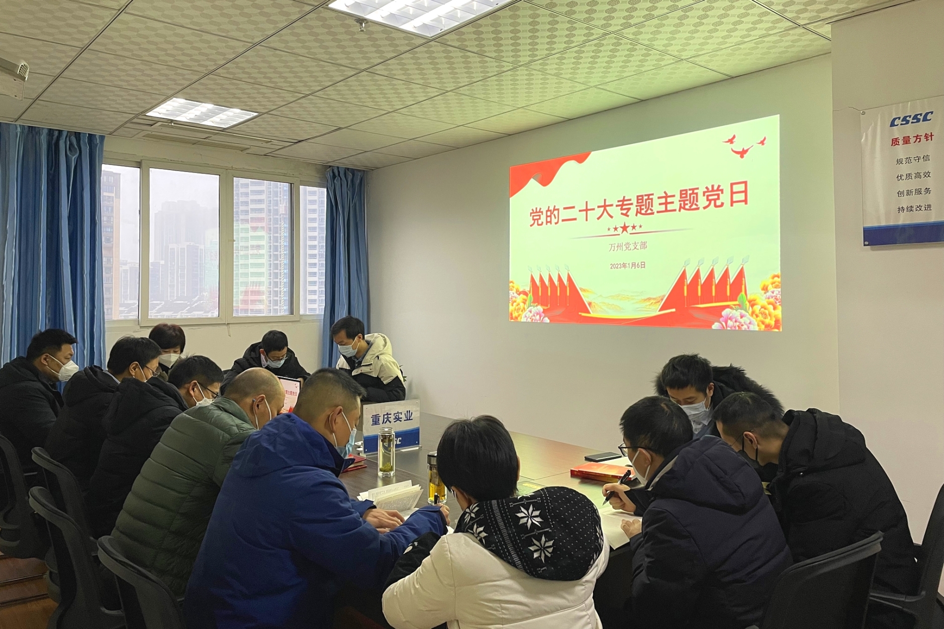 万州党支部组织全体党员、干部、入党申请人以及职工群众,开展了党的二十大主题党日活动。实业公司分管领导蔡建德参加支部学习,并作了题为“深入学习贯彻党的二十大精神 以新担当新作为奋力推进公司高质量发展”专题党课。全体与会人员再次认真学习了党的二十大报告、新修订的《中国共产党章程》等内容,党支部书记作了题为“学习贯彻党的二十大精神,坚持‘五个牢牢把握’”的党课。会上就学习贯彻党的二十大精神交流了心得体会。同时组织了党的二十大精神知识答题。大家表示,将自觉把学习宣传贯彻党的二十大精神作为当前和今后一个时期的重大政治任务,原原本本学、融会贯通学、联系实际学,切实把党的二十大精神转化为工作的强大精神动力,立足岗位,真抓实干,以踔厉奋发的姿态、更务实的作风、更饱满的热情投入到工作中,圆满完成公司各项任务指标。